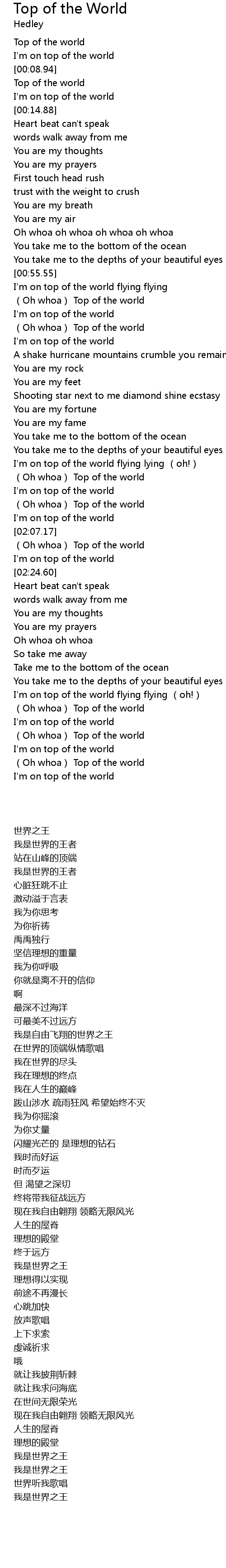 Top Of The World Lyrics Follow Lyrics